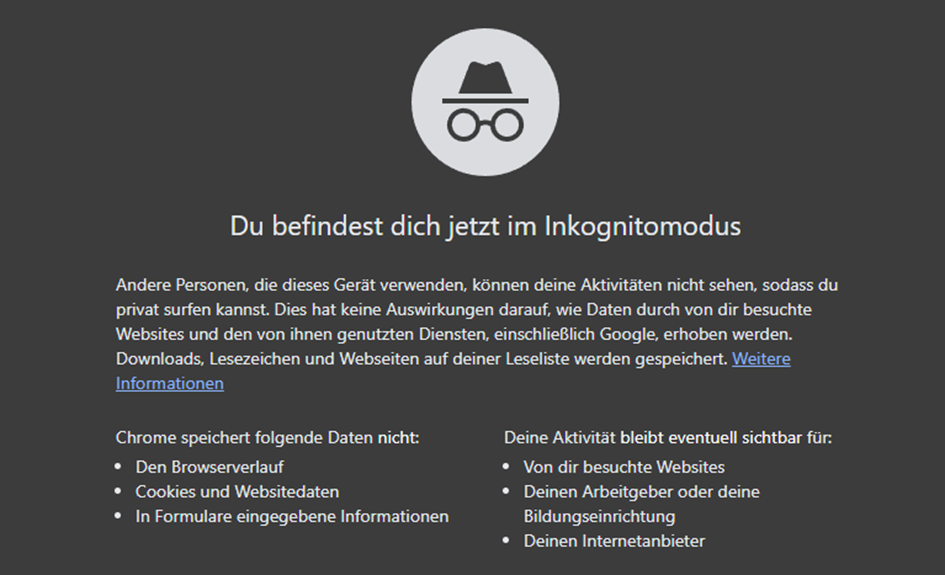 Im Inkognito-Modus speichert Chrome keine Verlaufsdaten, Cookies oder Formulareingaben. Dies ist besonders nützlich, wenn Sie Webseiten besuchen möchten, ohne Spuren auf Ihrem Gerät zu hinterlassen, oder wenn Sie mit mehreren Google-Konten arbeiten.
