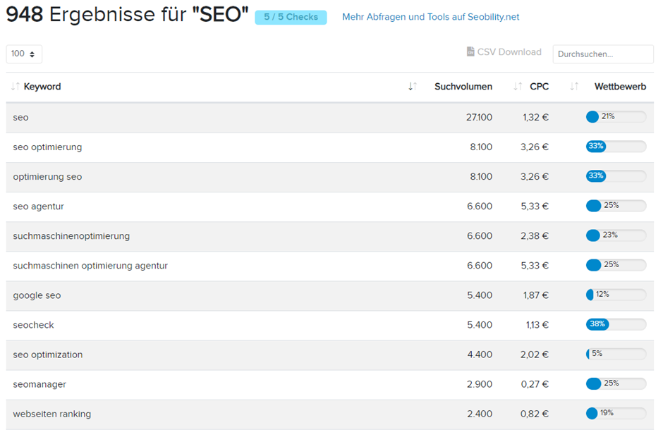 Ein herausragendes Merkmal von KEYWORDTOOLS.org ist die Möglichkeit, die Ergebnisse als CSV-Datei herunterzuladen. Diese Funktion erleichtert die weitere Analyse und Verwaltung der Keyword-Daten erheblich. Nutzer können die exportierten Daten bequem in Tabellenkalkulationsprogrammen wie Excel weiterverarbeiten und in ihre SEO-Strategien integrieren.