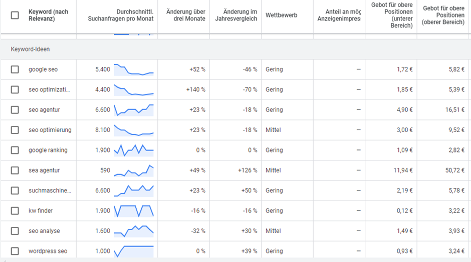 Zusätzlich zeigt der Google Keyword Planner das Wettbewerbsniveau für jedes Keyword an, wodurch Nutzer erkennen können, wie schwierig es sein könnte, für dieses Keyword zu ranken. Ein weiteres nützliches Feature sind die Kostenabschätzungen für bezahlte Anzeigen, die eine Vorstellung davon geben, wie viel eine Anzeige für ein bestimmtes Keyword kosten könnte. Diese Funktionen machen den Google Keyword Planner zu einem essenziellen Tool für die Planung und Optimierung von SEO- und PPC-Kampagnen.
